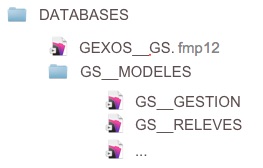 Sur le poste serveur dans le dossier DATABASES, assurez-vous d’avoir le fichier GEXOS__GS.fmp12 et dans le dossier GS__MODELES tous les autres fichiers commençant par GS__